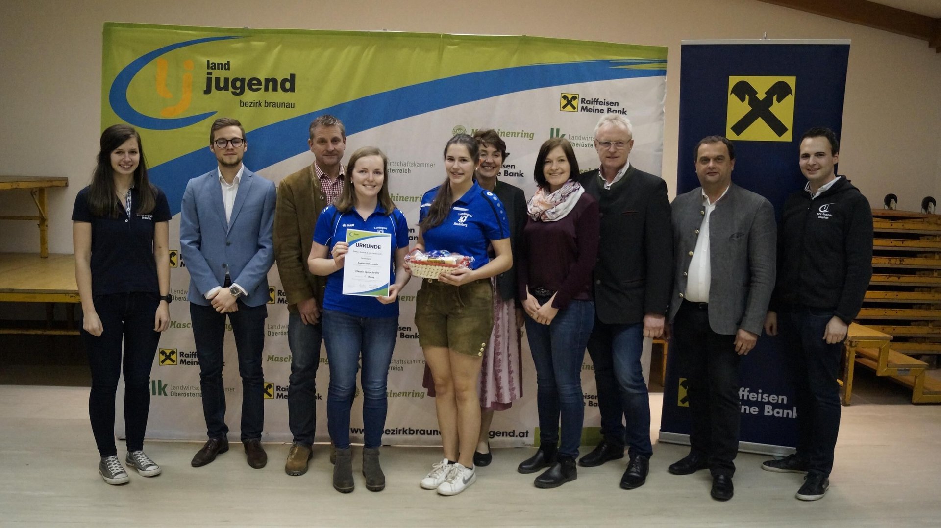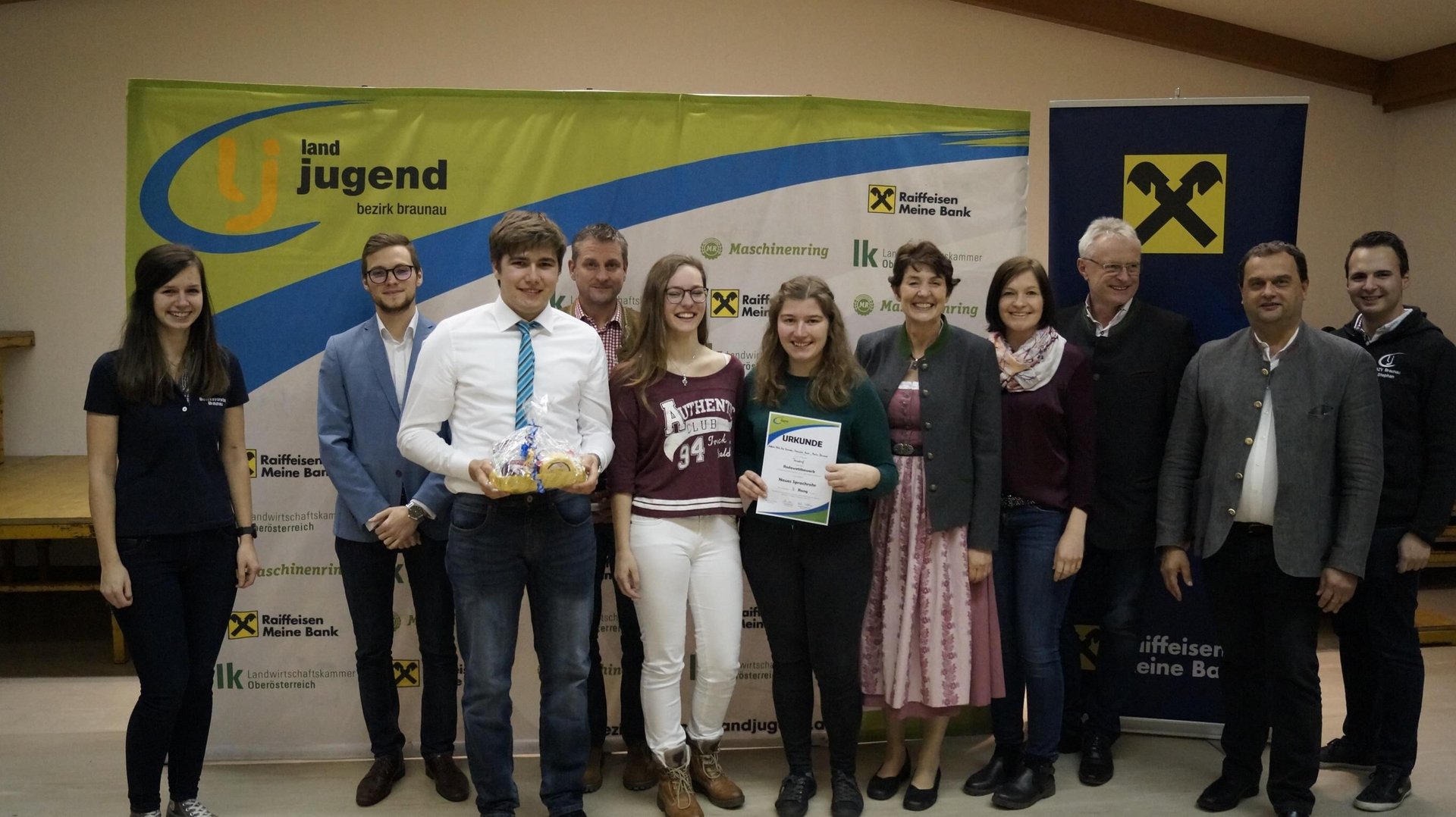 Anfang März trafen sich in der Volksschule Burgkirchen 47 redegewandte Landjugendliche des Bezirkes Braunau zum Redewettbewerb. Alle Teilnehmerinnen und Teilnehmer hatten die Möglichkeit in 3 verschiedene Kategorien anzutreten: Spontanrede, Vorbereitete Rede und Neues Sprachrohr. Bei letzterem war der Kreativität keine Grenzen gesetzt. So wurden z.B. theatralische, musikalische und lustige Sketche zu Themen wie „Jung und Rund aus gutem Grund“, „Mein Hof, mein Fleiß, mein Preis“, „Mülltrennen statt verbrennen“ und vielen mehr präsentiert. Über den 1. Platz durfte sich die Ortsgruppe aus Handenberg bestehend aus Weilbuchner Lisa und Zwinger Annika zum Thema „Unser Welt gibt´s ned 2x“ freuen.