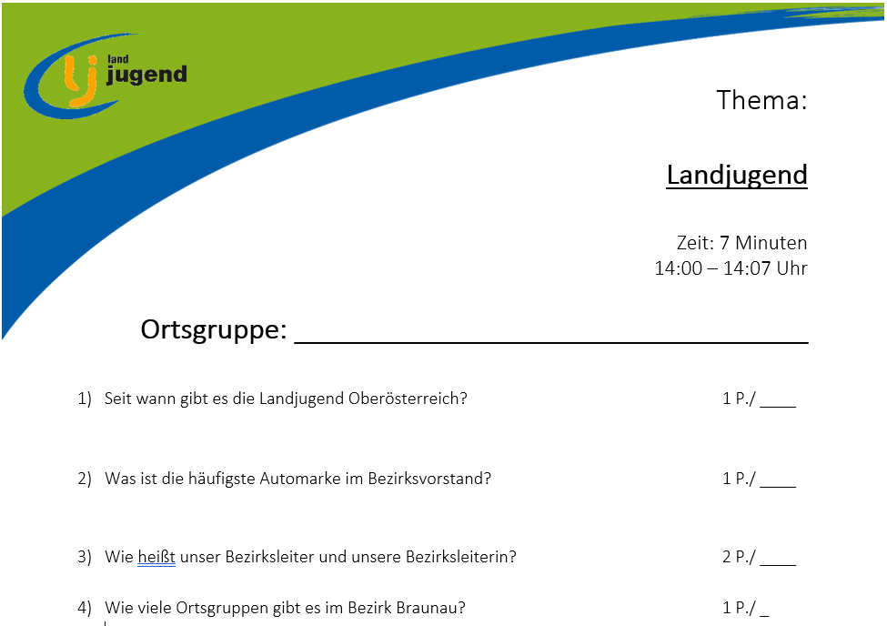Ein Danke an alle Landjugendlichen fürs Mitmachen. Wir hoffen, wir konnten eure Köpfe mal wieder so richtig einheizen!
