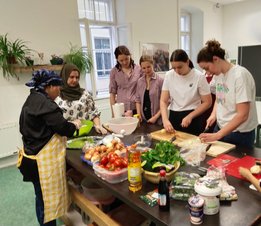 Am Montag, den 06.05. starteten wir unsere Themenabend-Reihe zu unserem Jahresprojekt „internationale Welten, regionale Wurzeln“ mit dem ersten Workshop: Orientalisch kochen. Elf Landjugendliche kochten unter Anleitung von Shabnam zwei afghanische Gerichte: Mantu (gefüllte Teigtaschen; gedämpft in einem speziellen, mehrstöckigen Dampftopf) und Chicken Biryani (gewürzter Reis, der vor dem Garen angebraten wird mit Hühnchen). Da das ganze in der Küche des Zentrums für Interkulturalität, Miteinander und Teilhabe (ZIMT) in Braunau stattfand, war auch ZIMT-Projektleiterin Nina mit dabei, um uns die Räumlichkeiten zur Verfügung zu stellen und den Abend ein wenig zu moderieren. Es war ein interessanter Abend, von dem sich sicherlich alle Teilnehmer:innen etwas mitnehmen konnten.