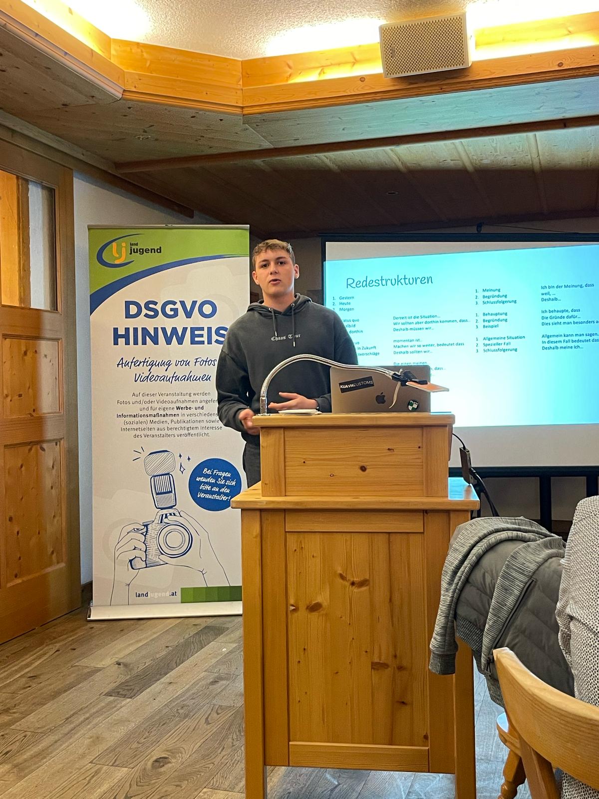 Die Schulung wurde abgehalten von Benjamin Renzl aus Gilgenberg, der im Jahr 2022 den Bundesentscheid in der Kategorie Spontanrede für sich entscheiden konnte.