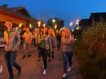 Flackernde Schatten spiegelten sich auf den Gesichtern der 33 Landjugendlichen, die sich zur Sternwallfahrt im Rahmen des Bezirkprojekts „Geh ma’s å“ am Sonntag, den 03. Oktober in Munderfing einfanden.