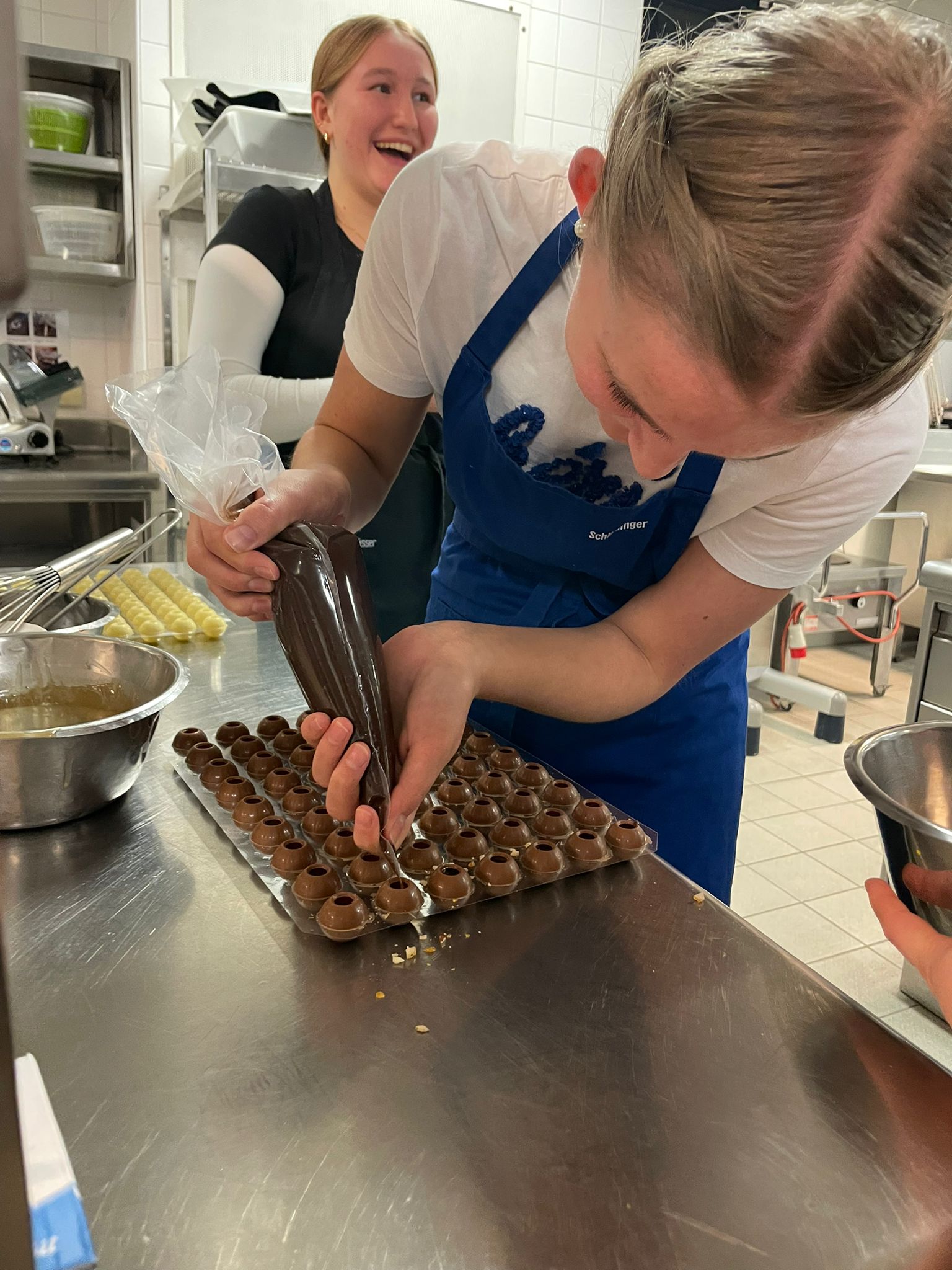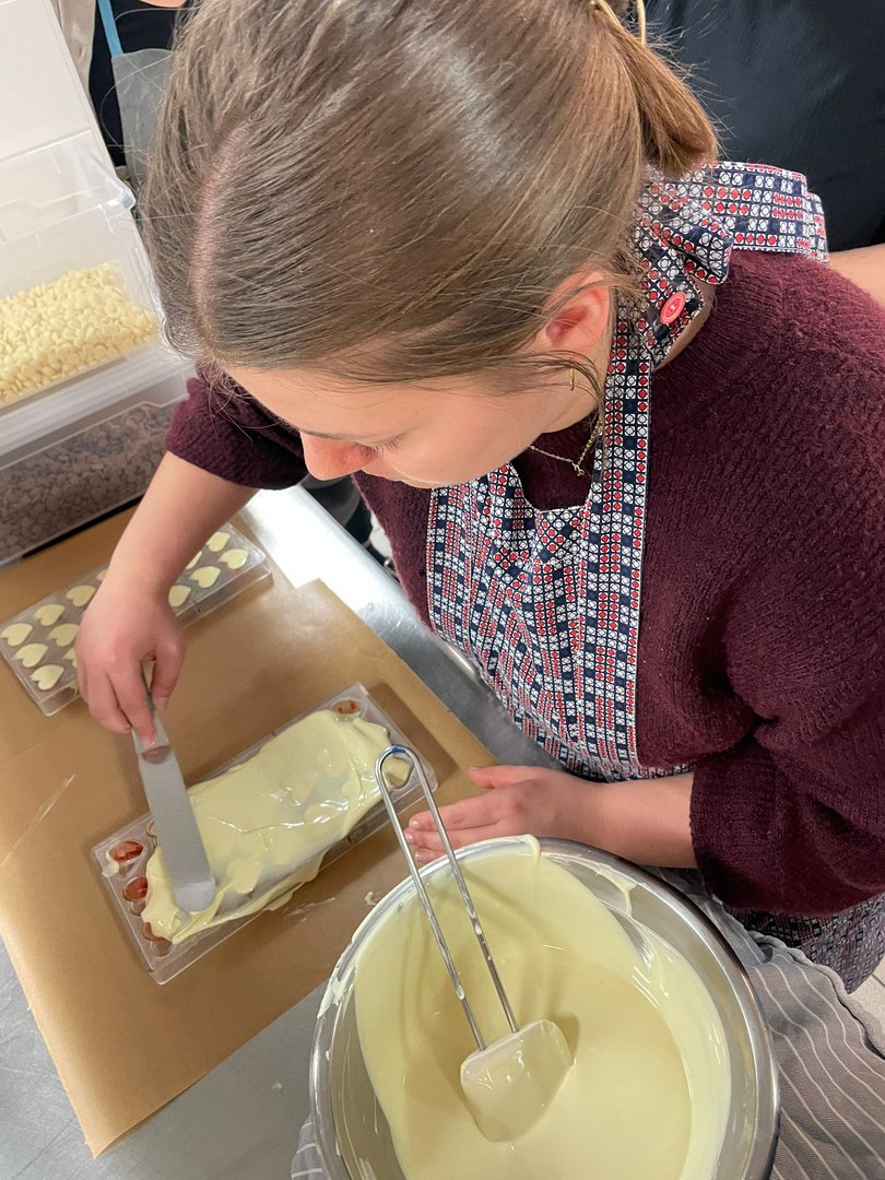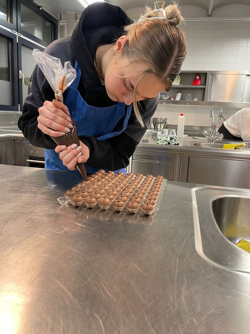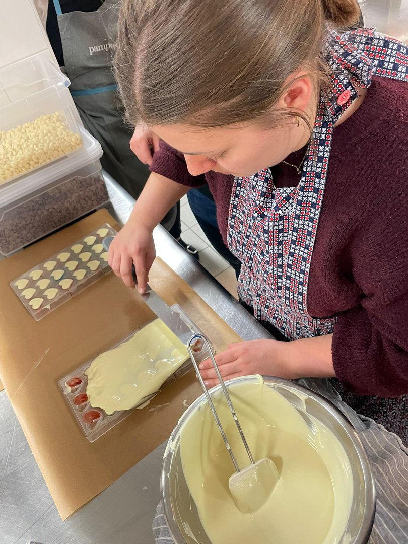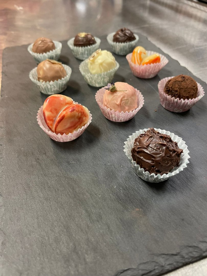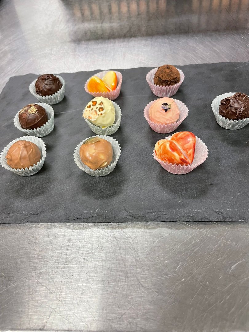 Beim Pralinenkurs vergangene Woche wurde gerührt, gefüllt und verziert, was das Zeug hält. Viele verschiedene Sorten, kreative Füllungen, bunte Farben und spannende Techniken machten den Kurs zu einem echten Highlight.